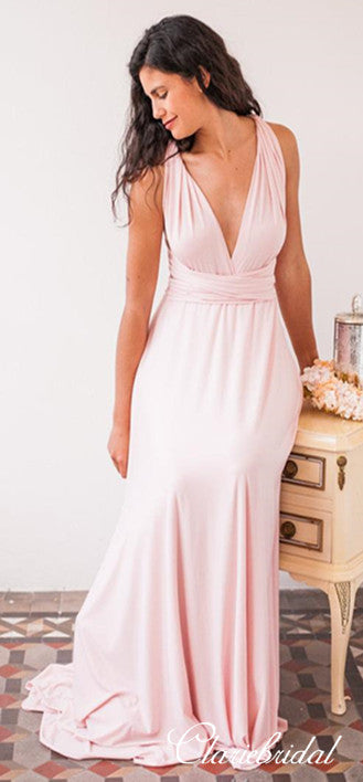 Convertible A-line Blush Pink Jersey Long Bridesmaid Dresses