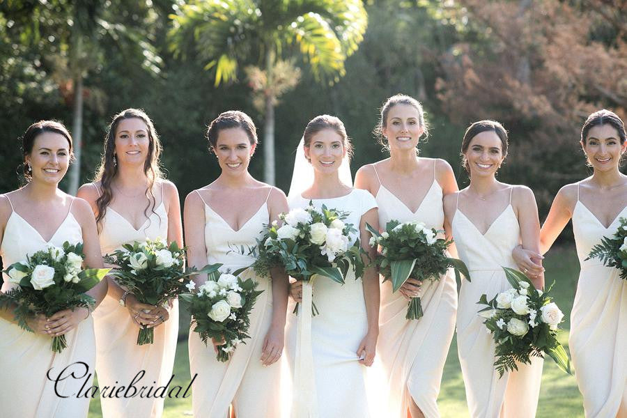 Spaghetti Straps Slit Bridesmaid Dresses, Unique Bridesmaid Dresses