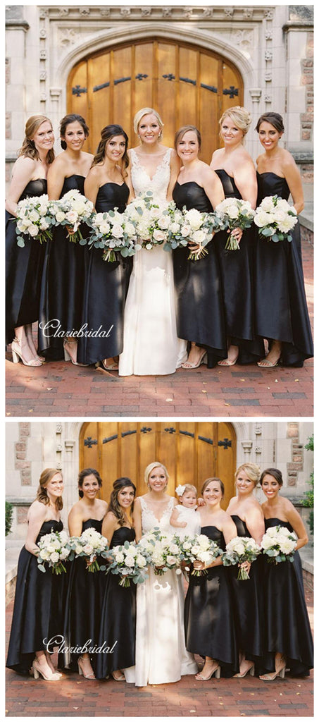 Strapless Black Bridesmaid Dresses, Sweetheart Wedding Guest Dresses