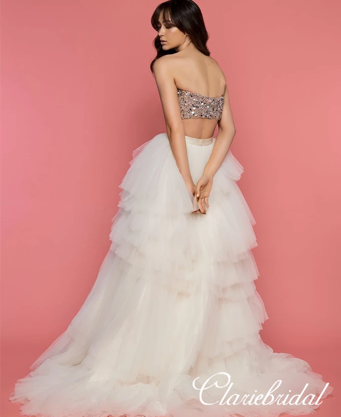 1.material:tulle,beads,sequins,elastic satin,ponge