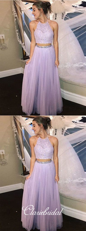 2 Pieces Lilac Lace Tulle Prom Dresses, Lovely Long Prom Dresses