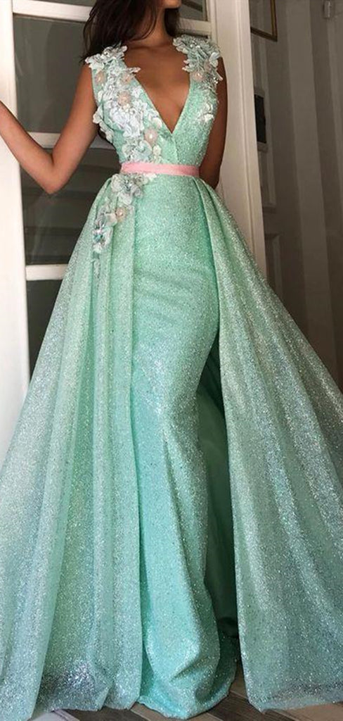2020 Popular Shiny Long Prom Dresses, Appliques Mermaid Prom Dresses, Fancy Prom Dresses