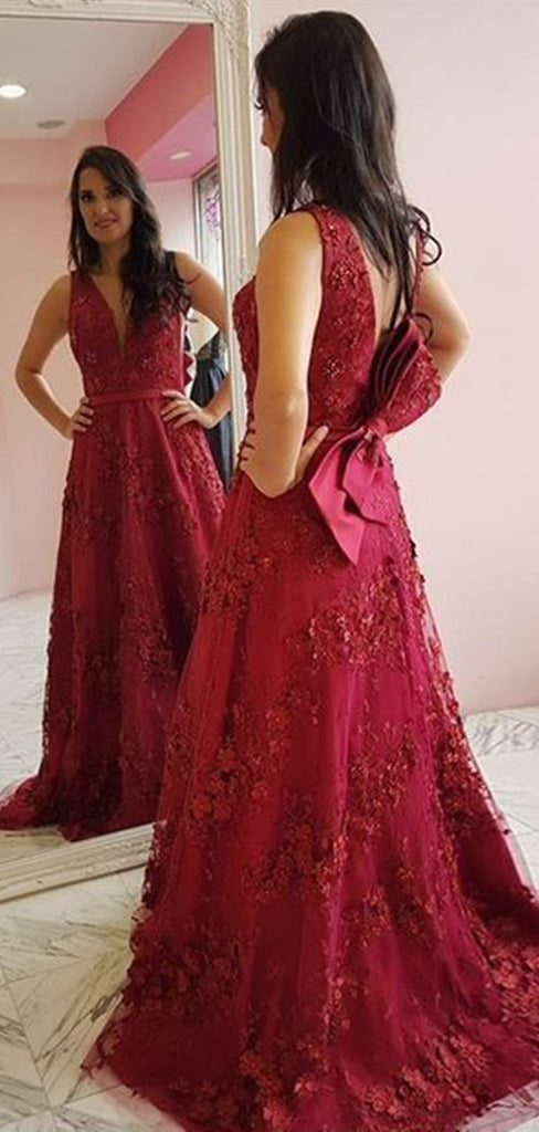2020 V-neck Lace Long Prom Dresses, Elegant Prom Dresses, New Fashion Prom Dresses