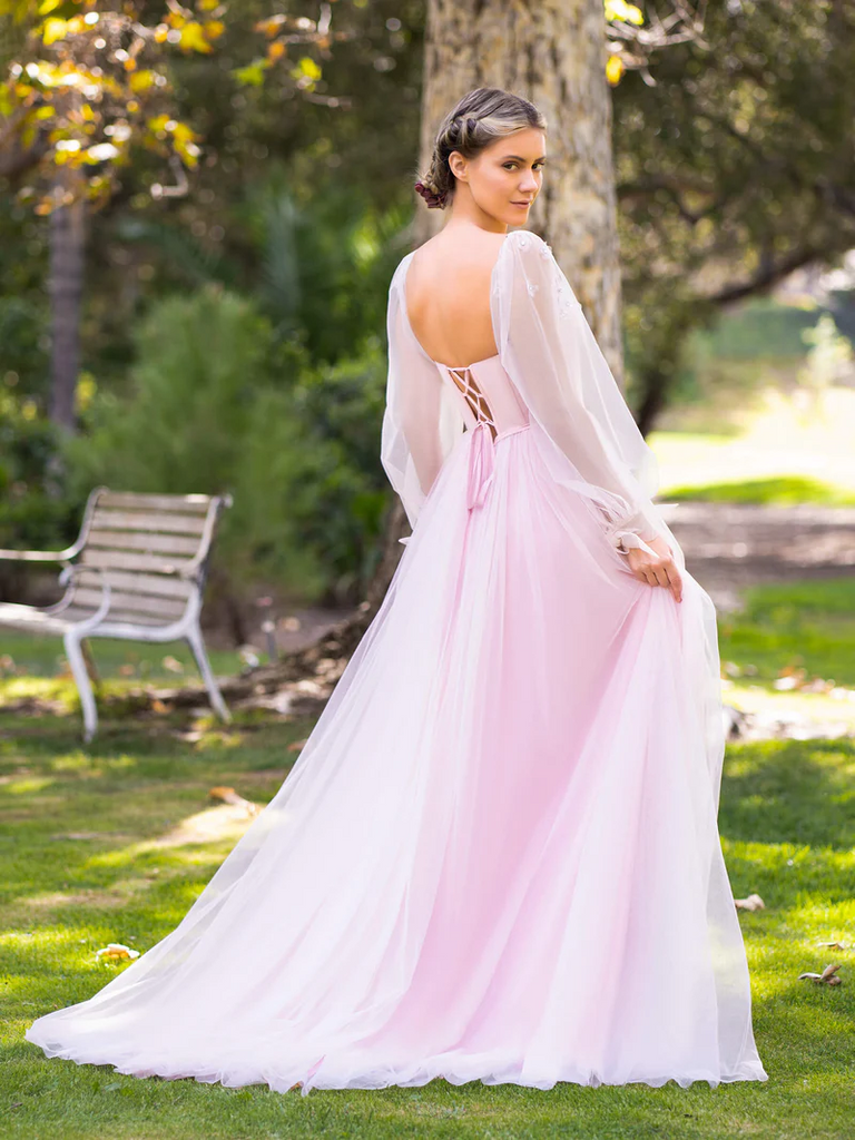 Corset Puffy Sleeves Newest 2023 Prom Dresses, A-line Wedding Guest Dresses, Pink Bridesmaid Dresses