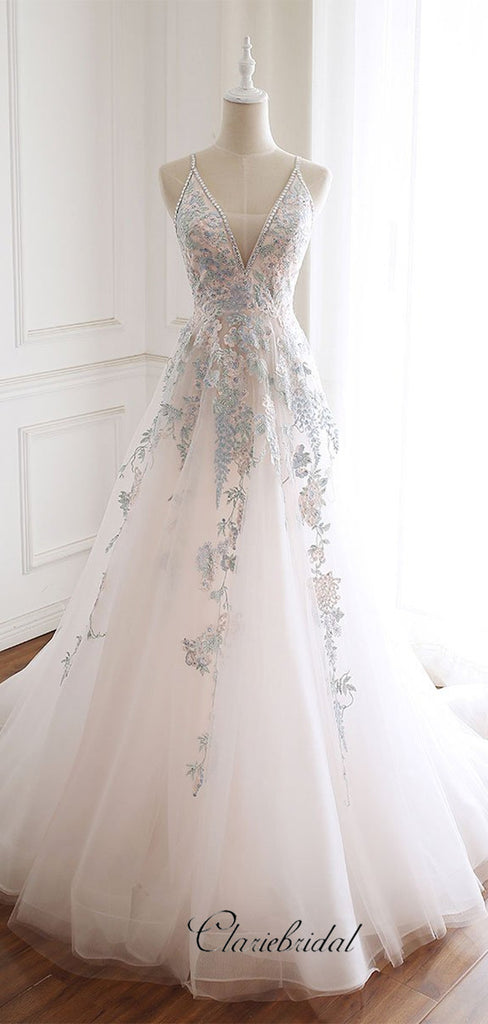 Elegant A-line Tulle Lace Prom Dresses, Newest Beaded 2020 Prom Dresses Long