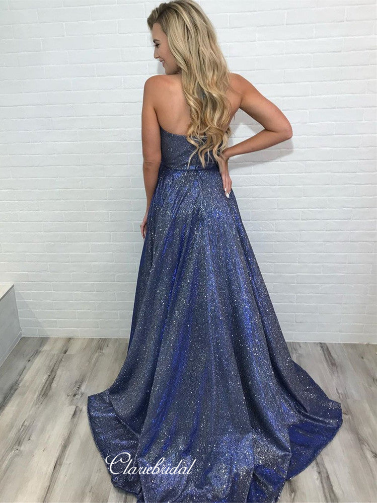 Glitter A-line 2020 Newest Prom Dresses, V-neck Simple Long Prom Dresses