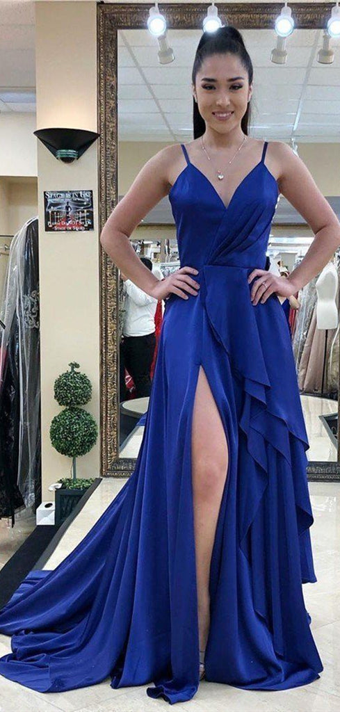 High Slit Royal Blue Prom Dresses, 2020 Prom Dresses, Simple Long Prom Dresses
