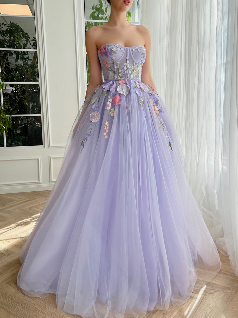 Lavender Floral Prom Dresses, Sweetheart A-line Prom Dresses, 2023 Prom Dresses, Maxi Dresses