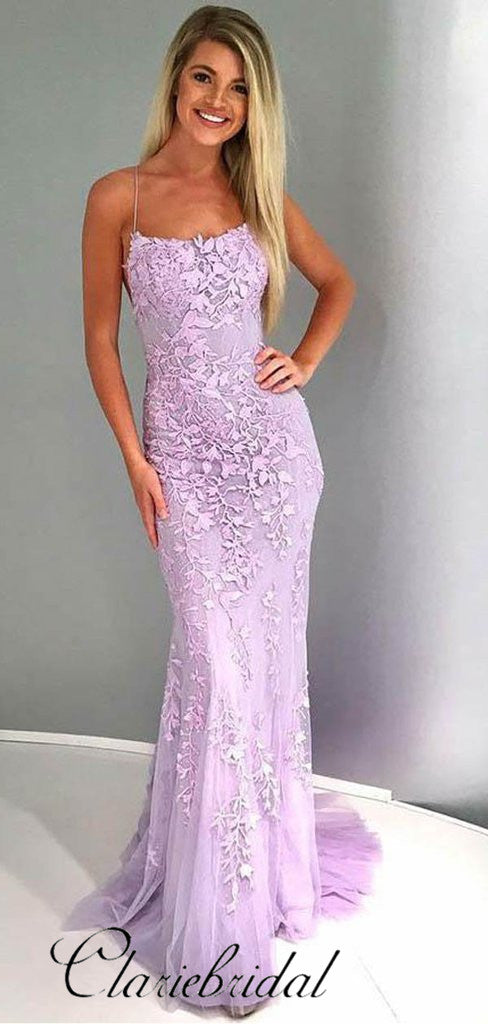 Lilac Lace Tulle Prom Dresses, Long Prom Dresses, Popular 2019 Prom Dresses