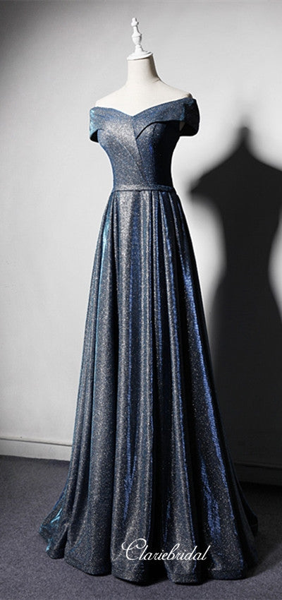 Off Shoulder Shemmering Fabric Long A-line Prom Dresses, Simple Prom Dresses, Long Prom Dresses