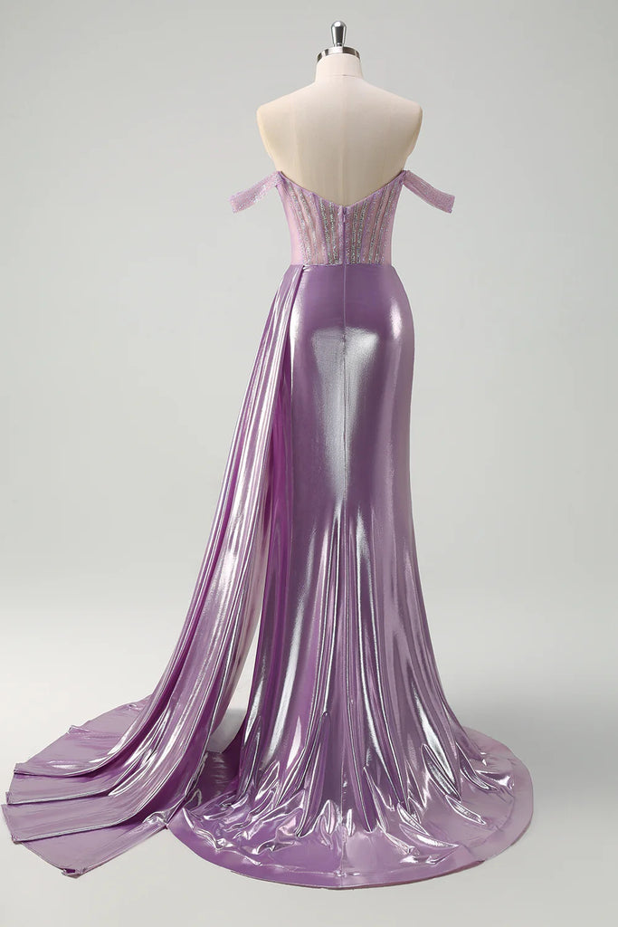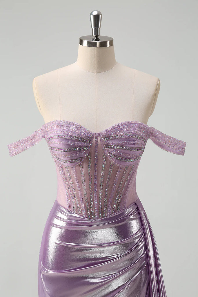 Off the Shoulder Light Purple Metalic Mermaid Prom Dresses, Newest 2025 Prom Dresses