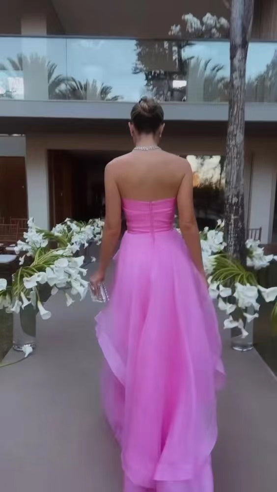 Pink Color Girl Graduation Party Dresses, Newest Strapless Long Prom Dresses, A-line 2023 Prom Dresses