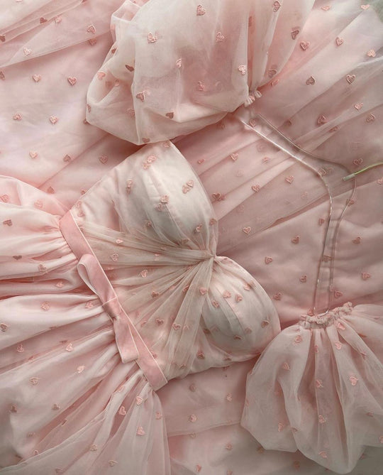 Pink Tiny Heart Long A-line Prom Dresses, Lovely Princess Dresses, Party Dresses, Newest 2022 Prom Dresses