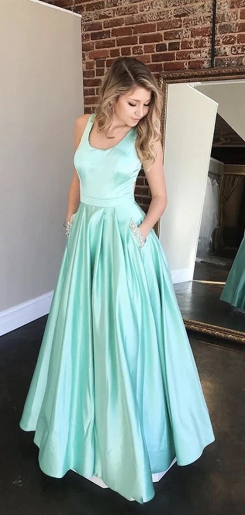 Satin A-line Newest Prom Dresses, Long Prom Dresses With Pocket