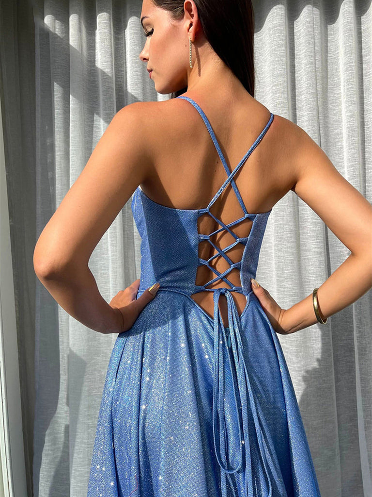 Shemmering Jersey A-line Prom Dresses, High Slit Long Prom Dresses, Unique Prom Dresses, Newest Prom Dresses