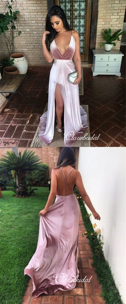 Simple Long Prom Dresses, Deep V-neck Prom Dresses, Cheap Prom Dresses