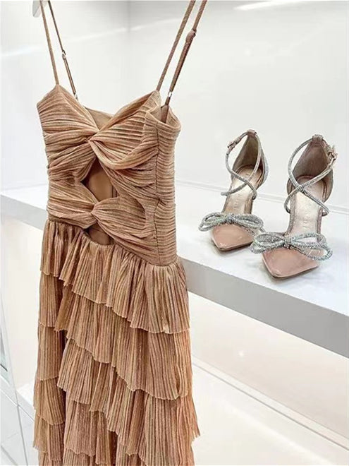 Spaghetti A-line Ruffled Prom Dresses, Chic Prom Dresses, Newest Prom Dresses, Party Dresses, Beachy Prom Dresses