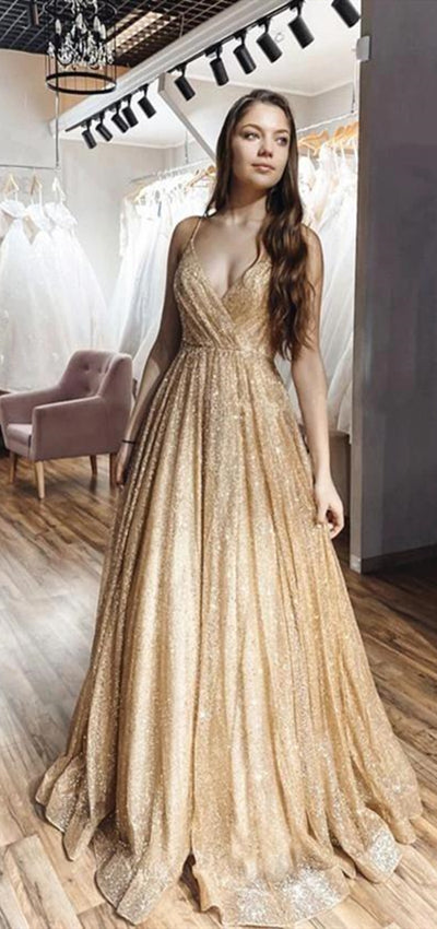 Spaghetti Long A-line Sequin Tulle Prom Dresses, Long Prom Dresses, Popular Prom Dresses