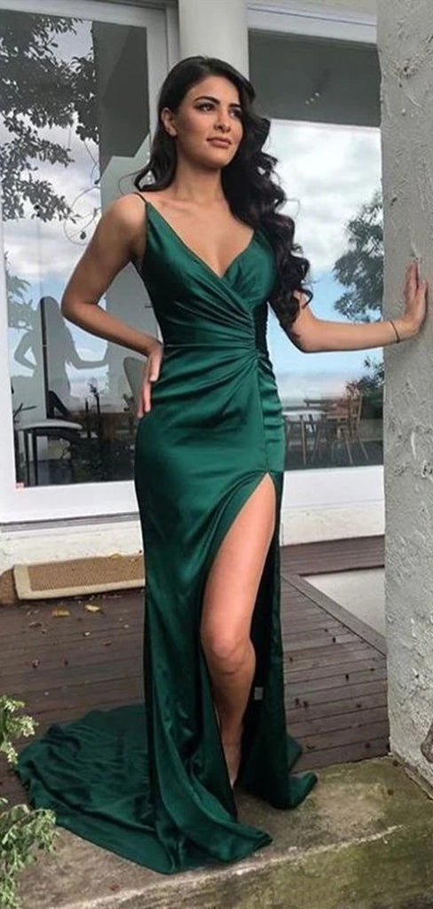 Spaghetti Straps V-neck Long Prom Dresses, Newest 2020 Mermaid Long Prom Dresses
