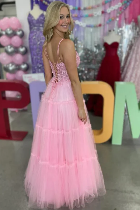 Spaghetti Straps V-neck Newest Long Prom Dresses, A-line 2025 Evening Party Dresses
