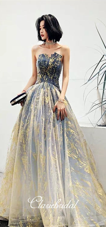 Strapless Long A-line Customized Sparkle Material Long Prom Dresses, Evening Dresses, 2020 Prom Dresses