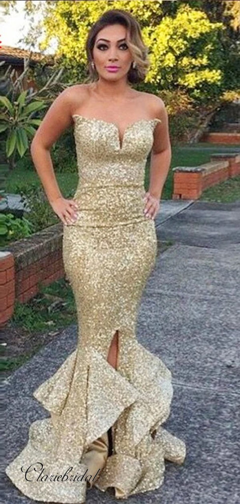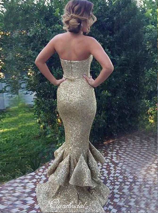 Strapless Sequins Prom Dresses Long, Mermaid Prom Dresses, 2020 Prom Dresses