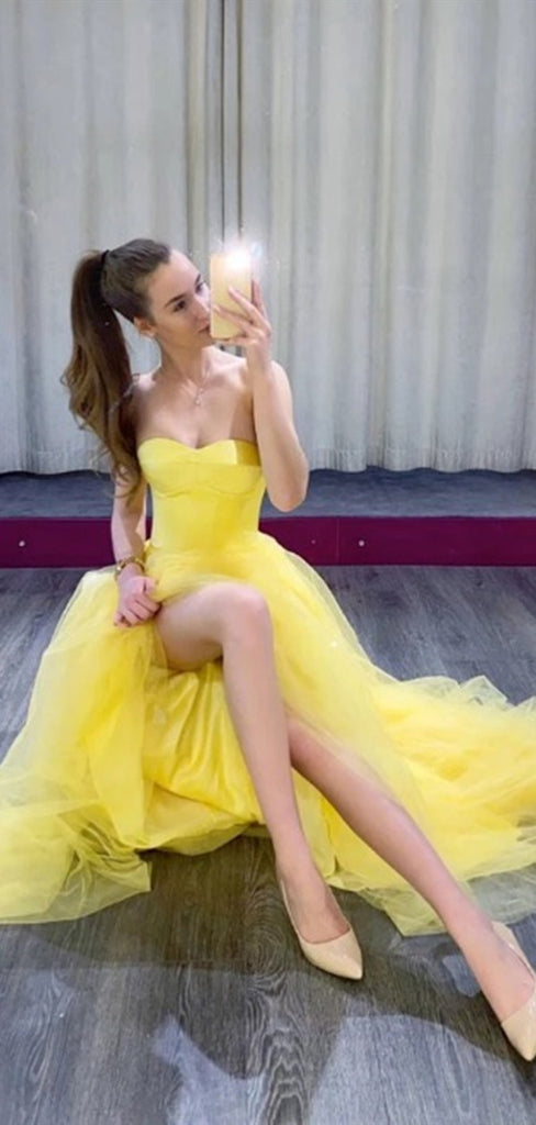 Strapless Simple Prom Dresses, Long Tulle Prom Dresses, 2020 Prom Dresses