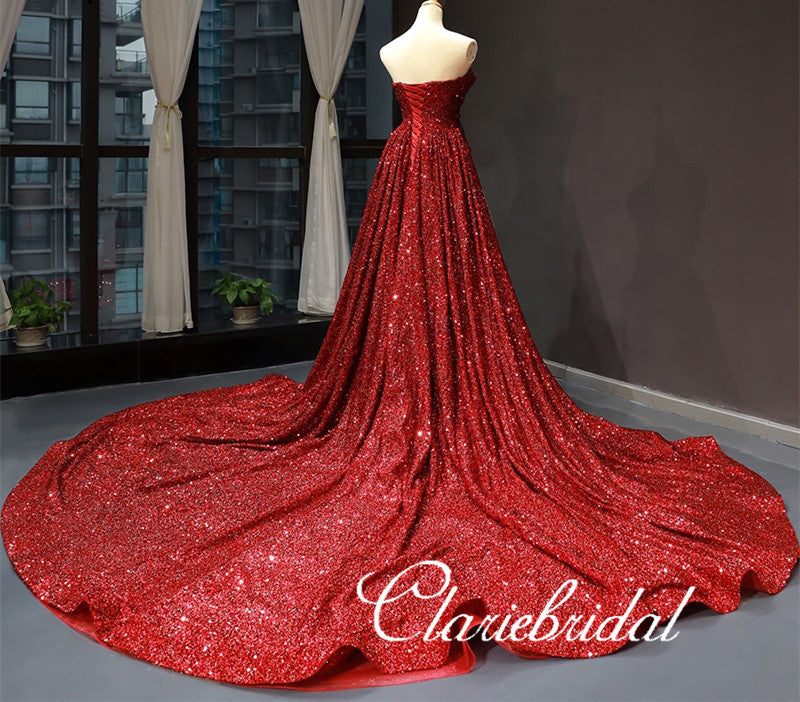 Sweetheart Long Red Sequin Prom Dresses, New 2020 Prom Dresses, Long Prom Dresses