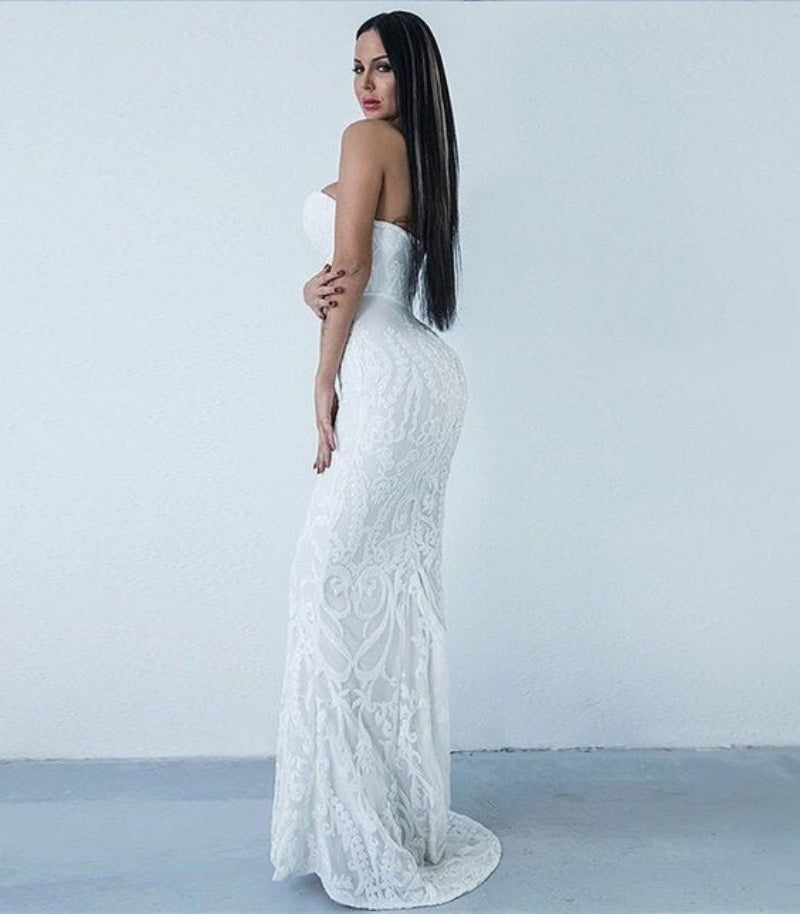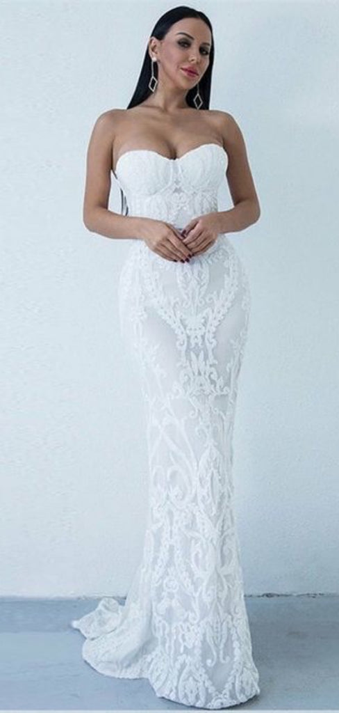 Sweetheart Mermaid Long Prom Dresses, Newest Lace Strapless Prom Dresses