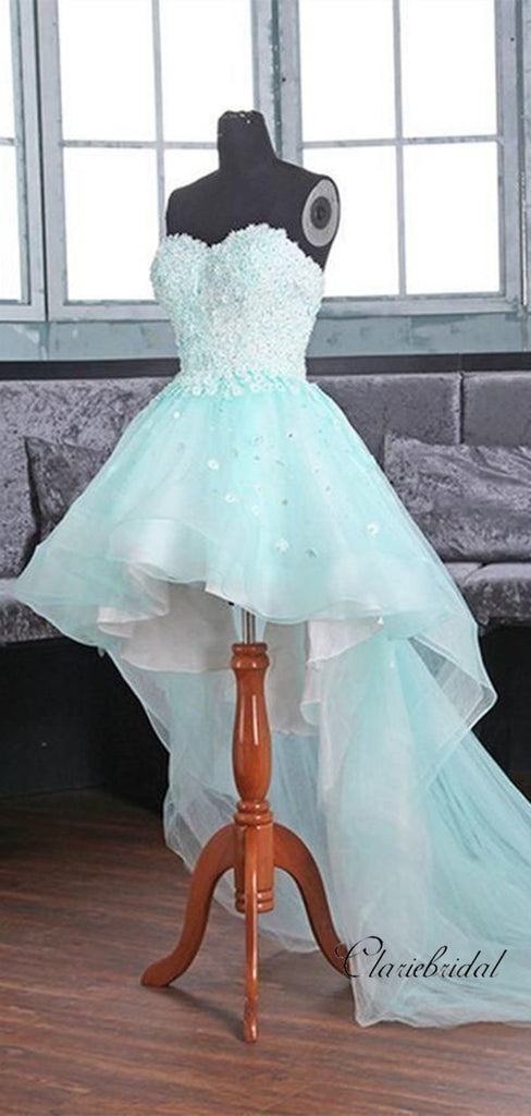 Sweetheart Strapless Tulle Lace Prom Dresses, High Low Newest 2020 Prom Dresses