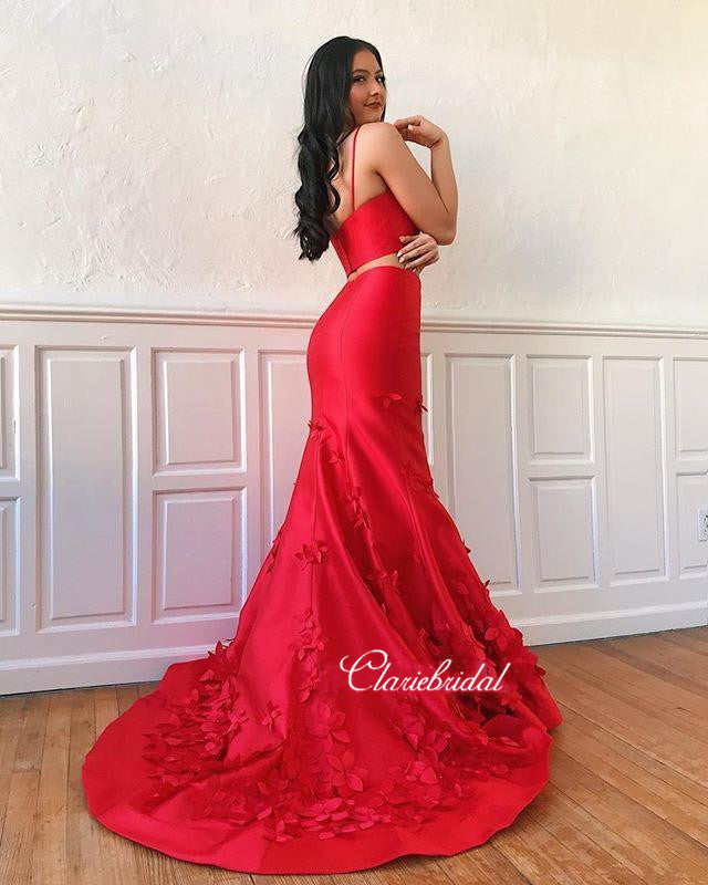 Two Pieces Appliques Long Prom Dresses, Mermaid Prom Dresses