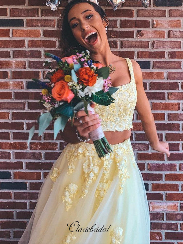 Two Pieces Lace Long Prom Dresses, Popular Prom Dresses, Newest Prom Dresses