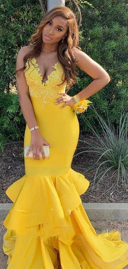 V-neck Lace Long Prom Dresses, Mermaid Popular 2020 Prom Dresses