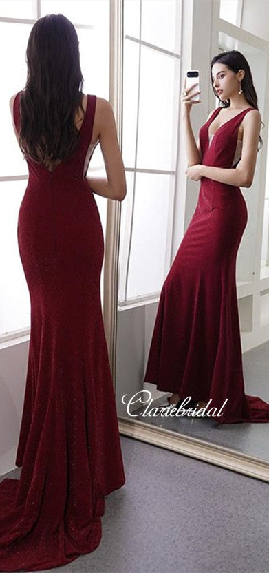 V-neck Long Mermaid Prom Dresses, Glitter Prom Dresses, Newest Prom Dresses, Long Prom Dresses