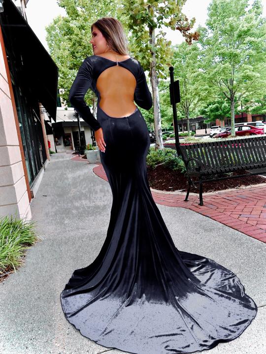 V-neck Long Sleeves Black Velvet Prom Dresses, Side Slit Prom Dresses, Simple Elegant 2021 Prom Gown