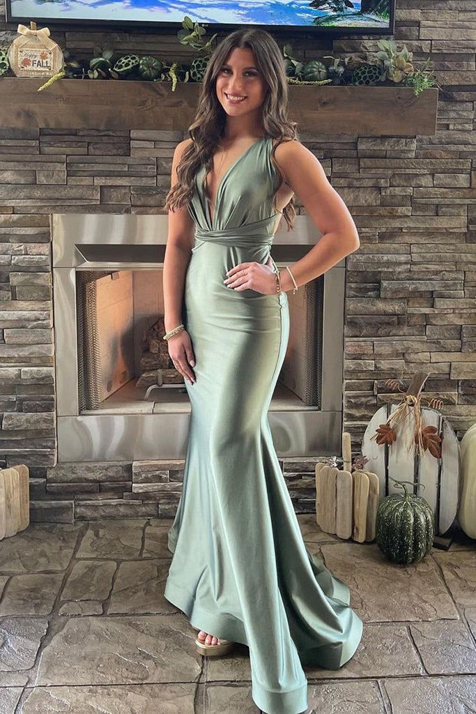 V-neck Wedding Bridesmaid Dresses, Newest Long Prom Dresses, Mermaid Evening Party Dresses