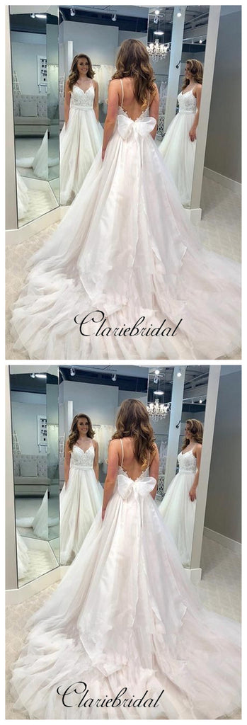 Elegant Spaghetti Straps Wedding Dresses, A-line Rosette Lace Bridal Gowns