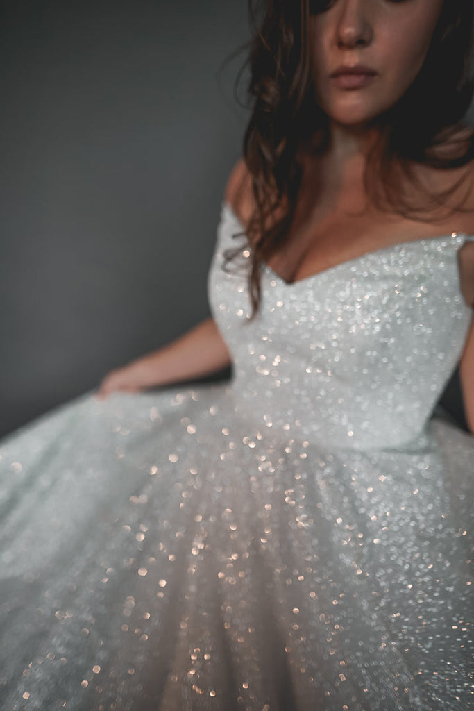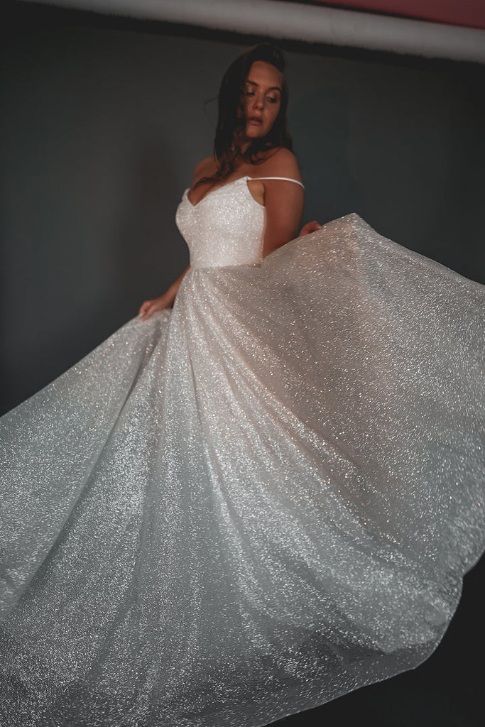 Spaghetti Long A-line Shny Sequin Tulle Wedding Dresses, Shiny Wedding Dresses, Bridal Gown, Popular 2022 Wedding Dresses